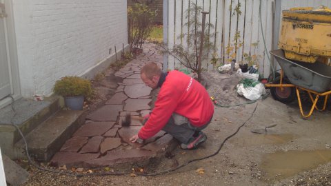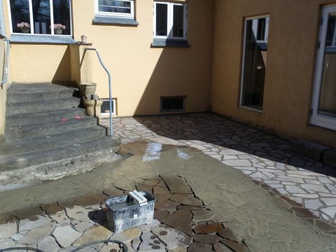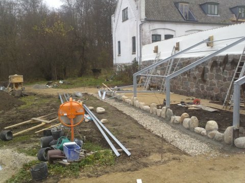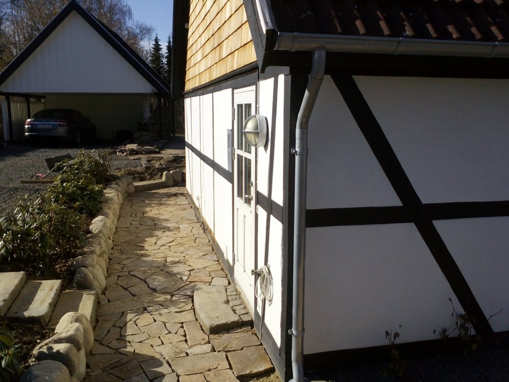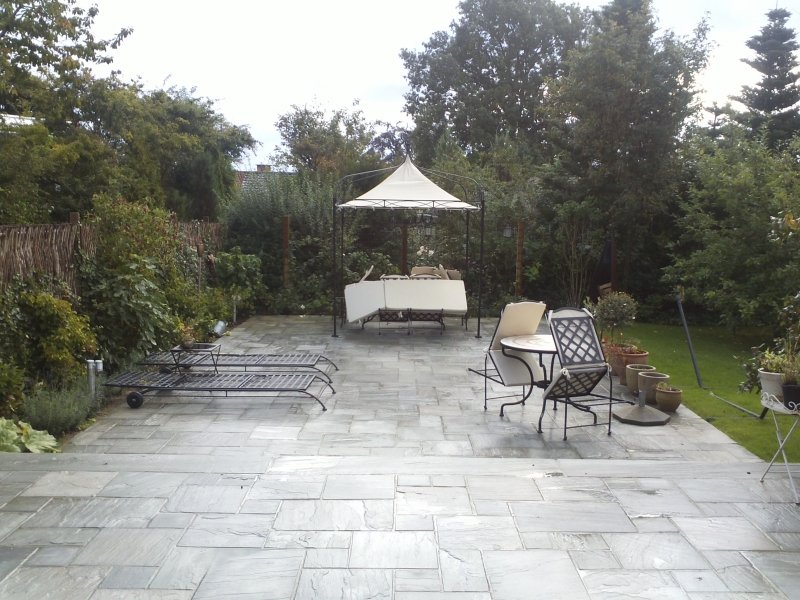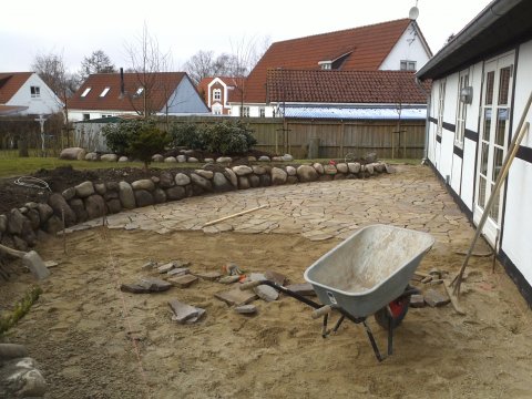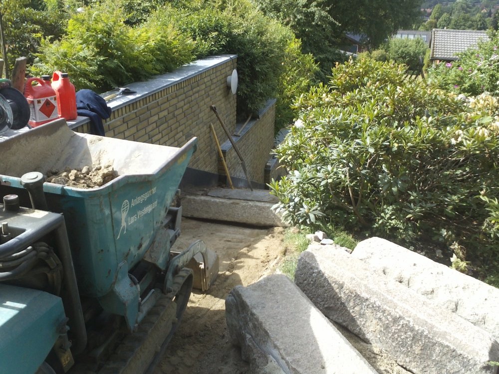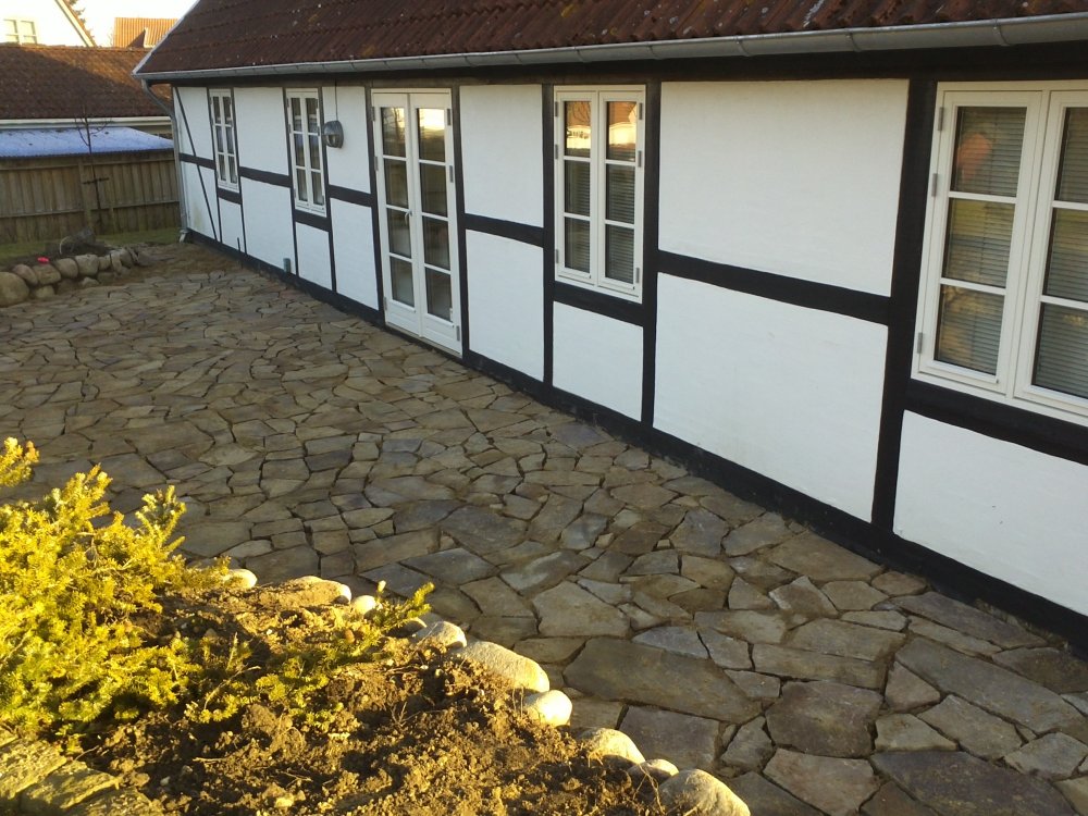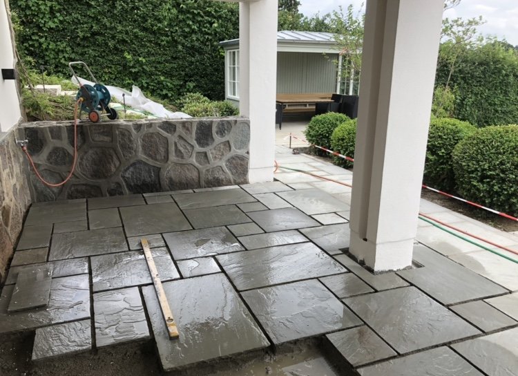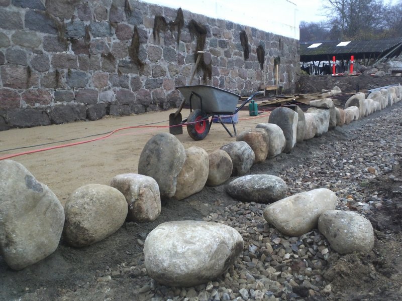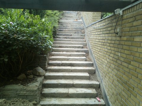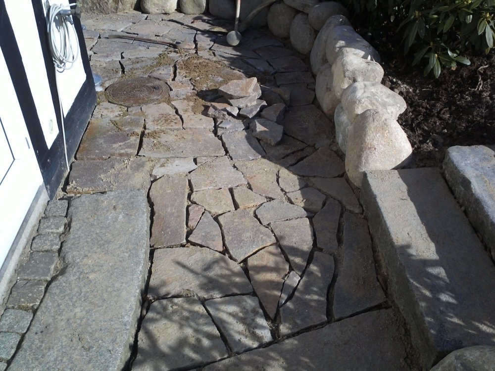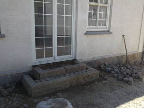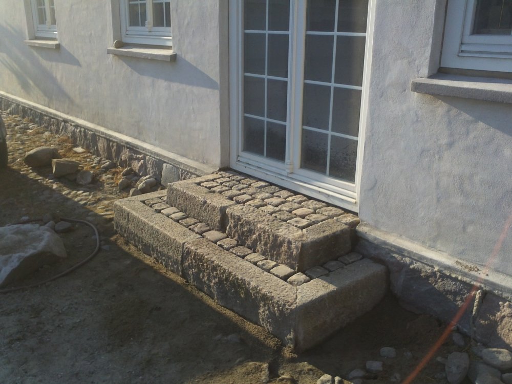 2 Trapper udført i smukke 100 - 300 år gamle kantsten - inden i trapperne er der sat gamle smukke chaussesten. - trapperne er skåret i smi (Som er lidt af en kunst at udfører på så ukurante sten)