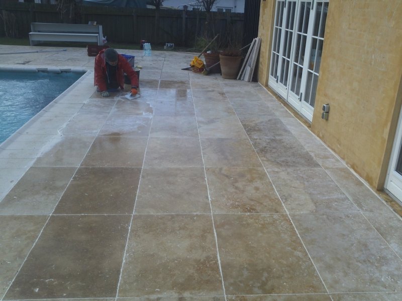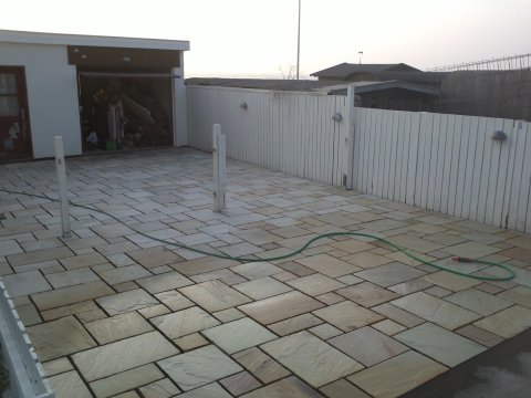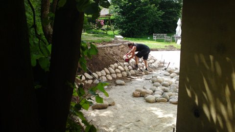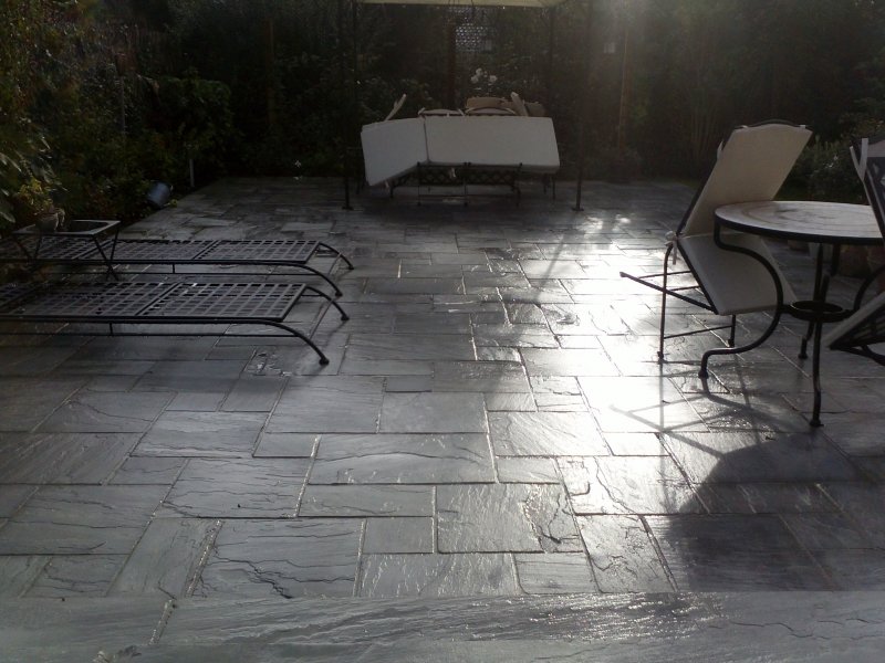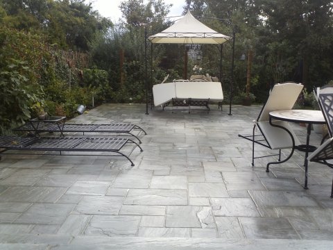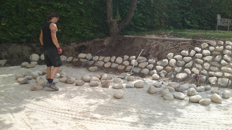 Smukke rustikke vulkanske granit brud lagt som terrasser og stier.